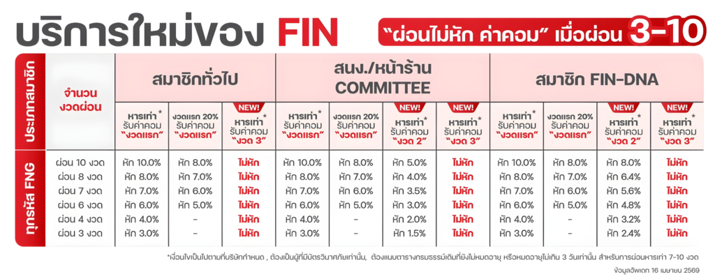 เงื่อนไข : ฟิน จ่ายค่าคอม “งวดแรก” ทันที! และรับค่าคอมทุกสัปดาห์ (ขายเอง)