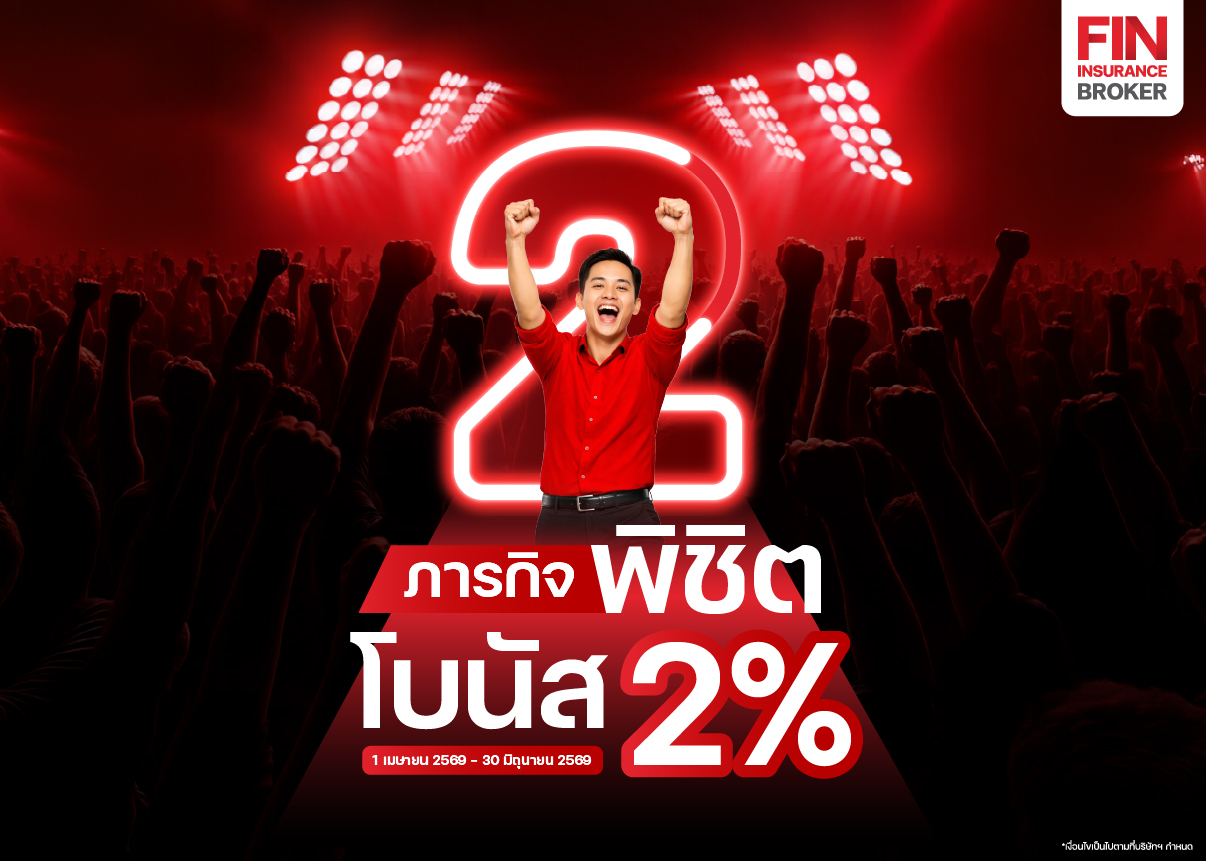 • นายหน้าขาย สะสมภารกิจ ค่าเบี้ยสุทธิให้บรรลุเป้าหมาย 100,000 บาทขึ้นไป รับผลตอบแทนพิเศษ 2.0% เฉพาะรายการ FQ ถัดไป ที่บรรลุภารกิจ